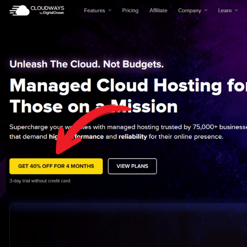 - Secondly when you arrive at the Cloudways website, click "GET 40% OFF FOR 4 MONTHS".