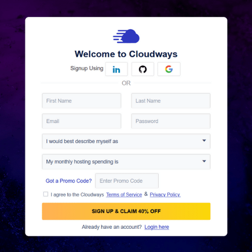 - Firstly to activate the 40% OFF Cloudways Promo Code , click this link.