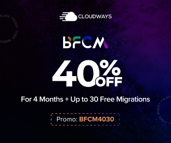 Cloudways offer is such that when you join their any hosting plan until 30th November 2022 you will get 40% OFF for the next 4 months. You will also receive up to 30 FREE migrations handled by Cloudways engineers. Easy way to migrate your websites to Cloudways at zero cost!
